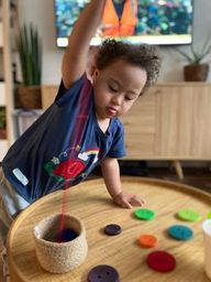 This toy has always been a favourite in our house. It has varying skill level first putting the bobbins into the base board before using the threading needle. Like the beehives toy can also use it for colour matching, counting and stacking.