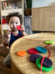 We were gifted this from Babipur and it definitely makes our top 5 list. The smaller and larger buttons give a two level skill approach. As with all Grimms toys. There is just so much more you can do with this set. Counting, colour matching, sequences, in play as coins and tokens etc. The buttons are bigger than I was expecting them to which was a pleasant surprise.